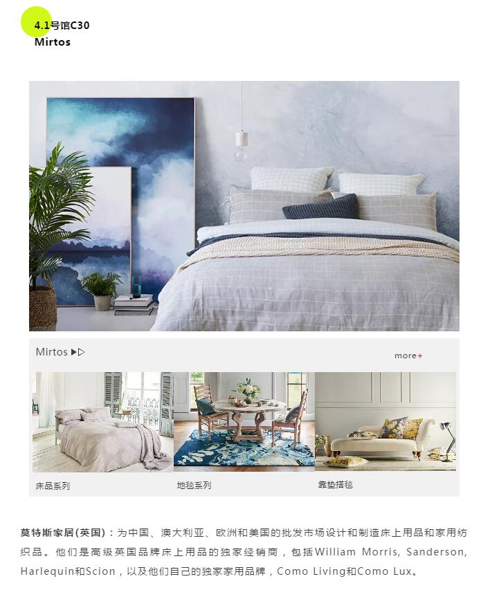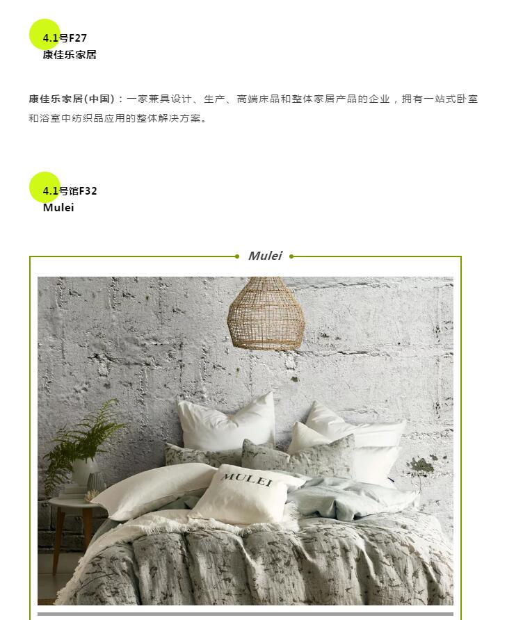 您現在的位置是:首頁 > 要聞 2019Intertextile秋冬家紡展:成品區劇透,看這些品牌如何詮釋理想生活 來源:intertextile家紡展 發布日期:2019-07-30 字體: 【小】 【中】 【大】 2019年8月28日至31日來自25個國家和地區的1000多家參展商將匯聚2019Intertextile秋冬家紡展。本屆展會上擴大了成品區以便為觀眾提供更多的采購選擇。中國品牌和國際品牌都將分別展示一系列的產品類別,并涵蓋整體家裝的概念。 整體軟裝產品代表展商 5.1號館F17 Halo Fabric 熱門文章: 聚力專精特新 共筑產業未來—2026中國紡聯春季聯展【紡織專... [2026-02-05] 鏈接全球家紡商機,2026intertextile秋冬展展位... [2026-02-04] 數讀2025 | 盤點全年中國紡織行業對外貿易表現 [2026-02-03] 以改革創新精神將社會工作各項決策部署落實到位--與會代表深入... [2026-01-28] 鏈接全球紡業,共啟“十五五”新篇--2026年紡織貿促會邀您... [2026-01-27] 展會直通車