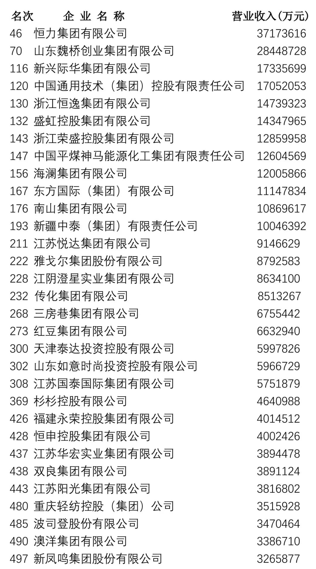 9月1日,中國企業聯合會、中國企業家協會發布2019年中國企業500強榜單,包括制造業企業244家,服務業企業173家。記者經過查詢榜單,梳理出紡織服裝以及相關企業31家。他們是: