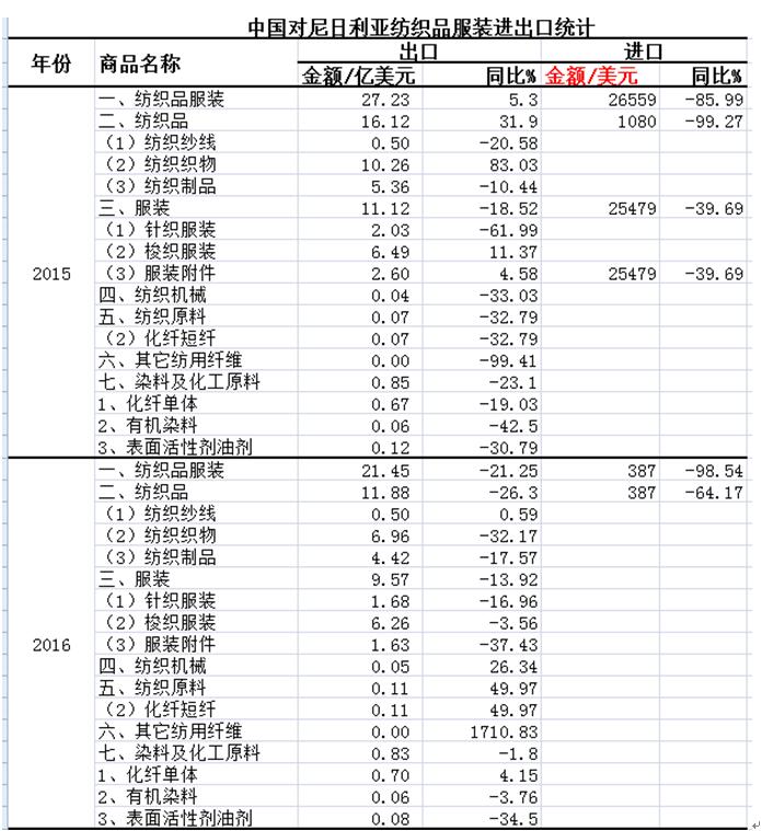 尼日利亞目前每年進口紡織品和服裝約40億美元,且為非洲第一人口大國,國內(nèi)市場需求巨大。紡織品和服裝是中國對尼日利亞的主要出口商品。