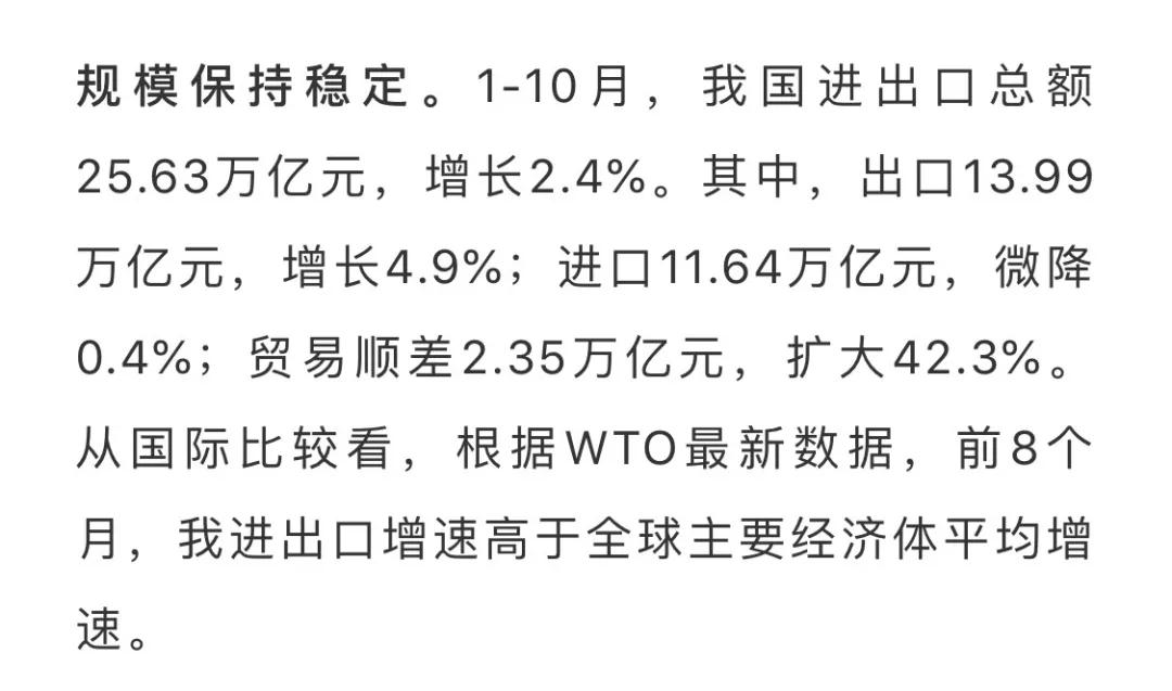 11月12日,商務(wù)部外貿(mào)司負(fù)責(zé)人介紹了2019年1-10月我國(guó)對(duì)外貿(mào)易情況。