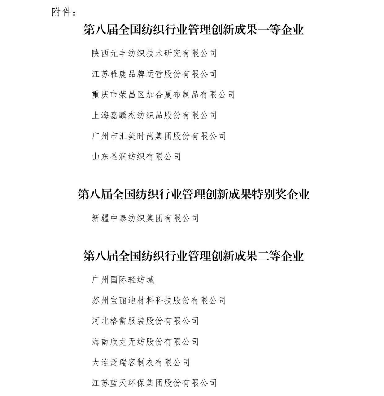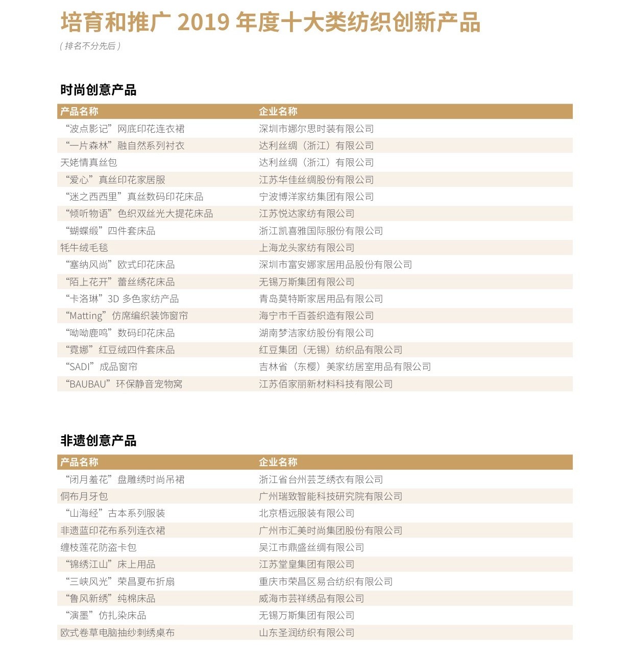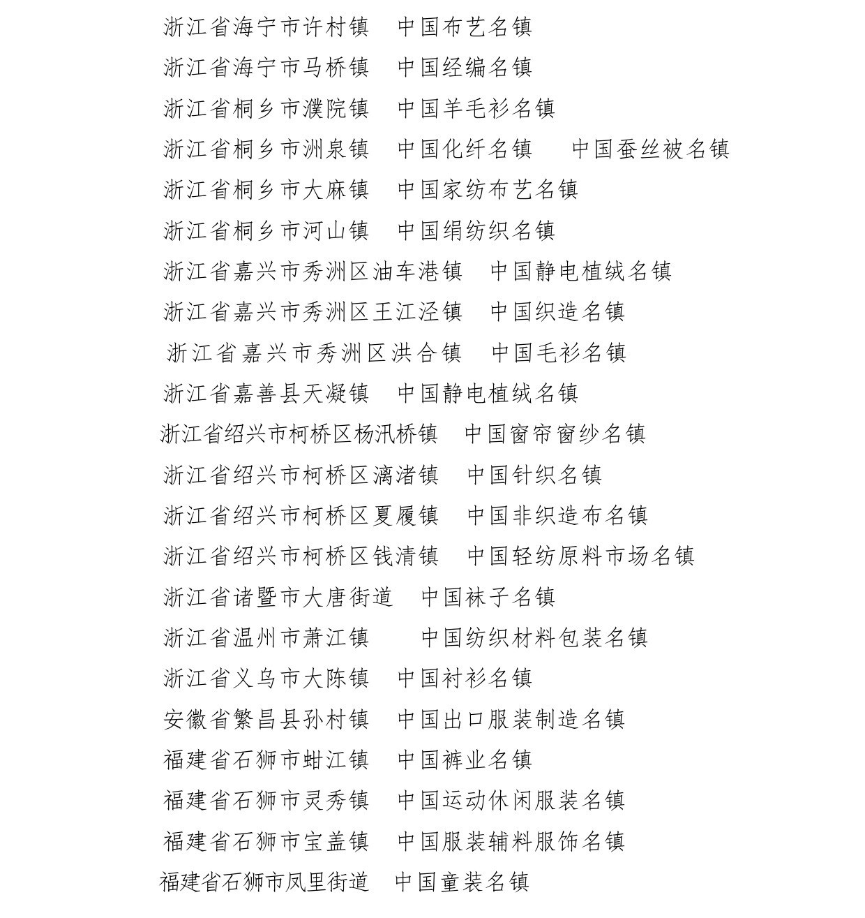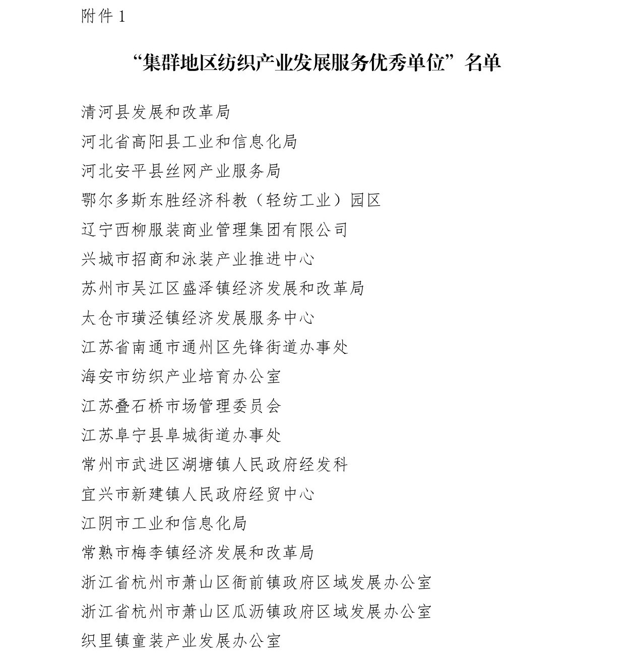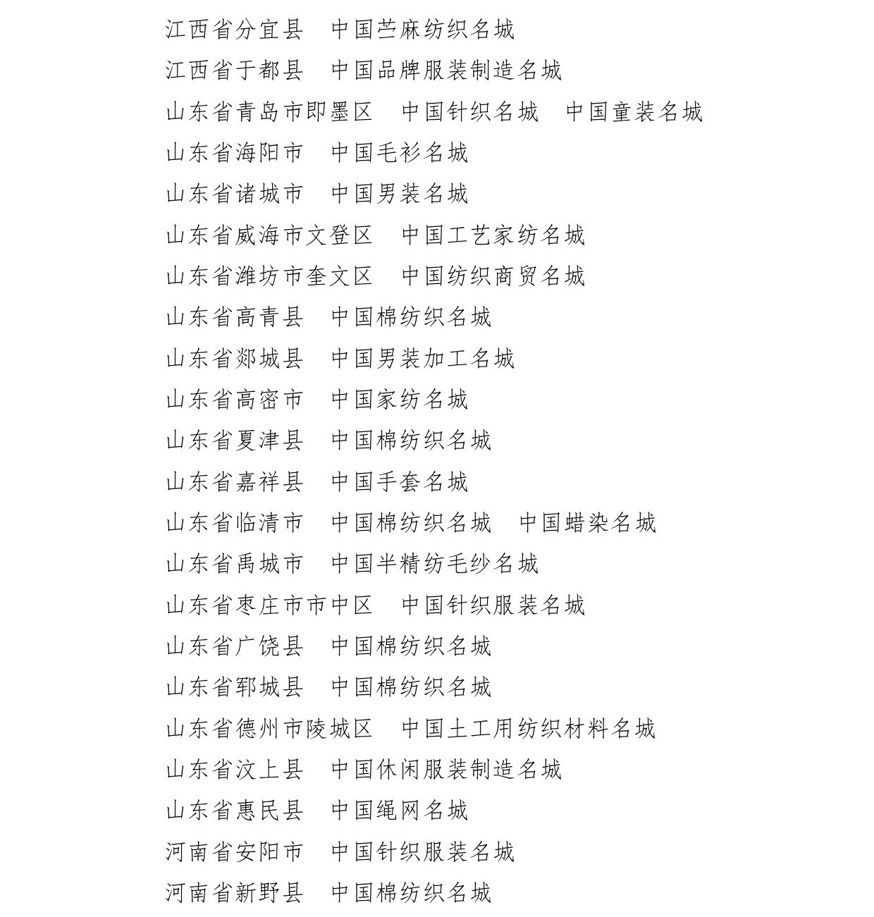 會(huì)議還為遼寧省海城市等197個(gè)紡織產(chǎn)業(yè)集群試點(diǎn)地區(qū)授牌。確定山東省昌樂(lè)縣等七個(gè)地區(qū)為紡織產(chǎn)業(yè)集群試點(diǎn)地區(qū)并授牌。頒發(fā)“集群地區(qū)紡織產(chǎn)業(yè)發(fā)展服務(wù)優(yōu)秀單位獎(jiǎng)”、“紡織產(chǎn)業(yè)集群試點(diǎn)工作推動(dòng)優(yōu)秀單位獎(jiǎng)”。頒發(fā)“第八屆全國(guó)紡織行業(yè)管理創(chuàng)新成果獎(jiǎng)”。頒發(fā)“2019年度十大類紡織創(chuàng)新產(chǎn)品獎(jiǎng)”。頒發(fā)“2019年度中國(guó)紡織工業(yè)聯(lián)合會(huì)產(chǎn)品開(kāi)發(fā)貢獻(xiàn)獎(jiǎng)”。