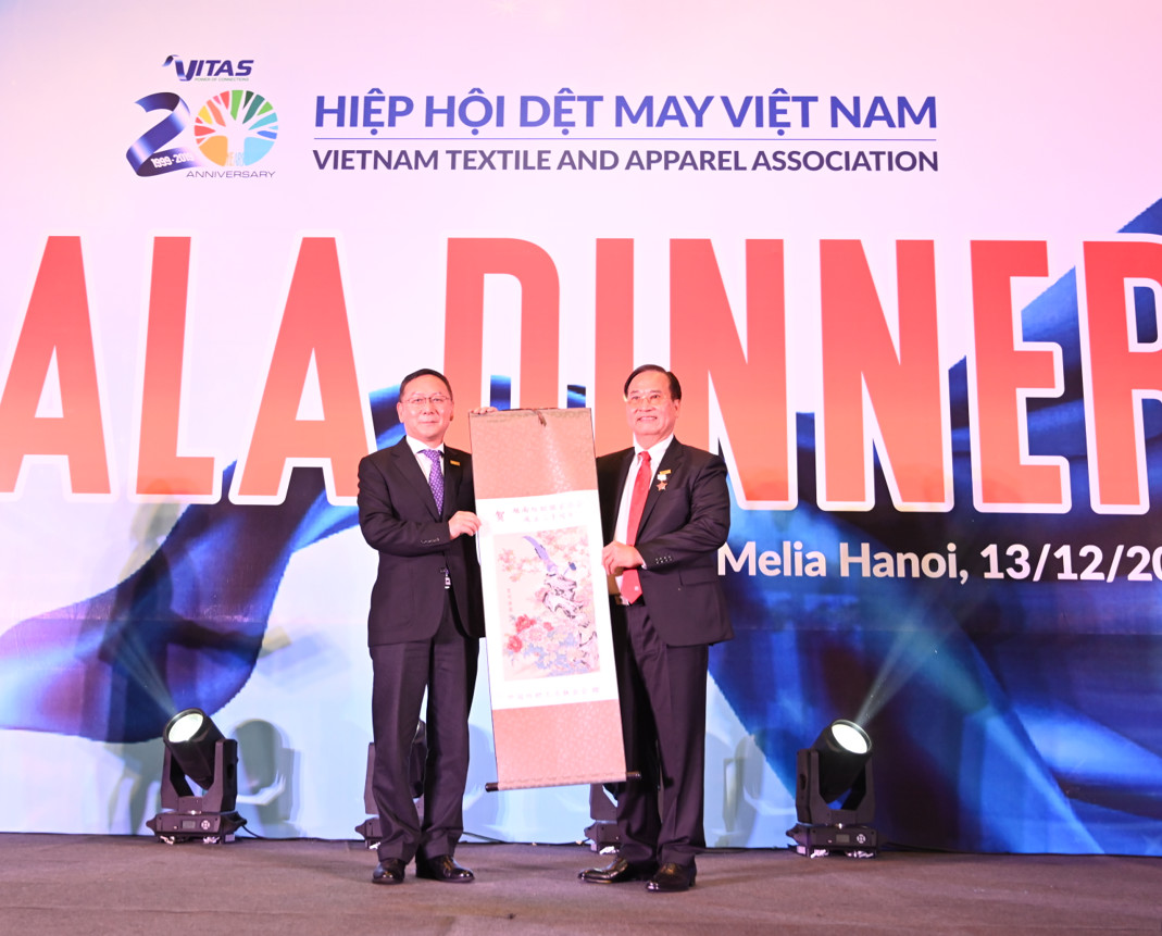 越南紡織服裝協(xié)會與中國紡織工業(yè)聯(lián)合會近年來共同努力促進中越兩國紡織服裝產(chǎn)業(yè)合作共贏,取得了積極成果,雙方一直保持著較為緊密的合作關(guān)系。此次作為特邀嘉賓出席越方的慶典活動,徐迎新副會長代表中紡聯(lián)向越南紡織服裝協(xié)會表達了祝賀,并向越方贈送了中國紡織工業(yè)聯(lián)合會會長孫瑞哲的親筆賀信及賀禮。