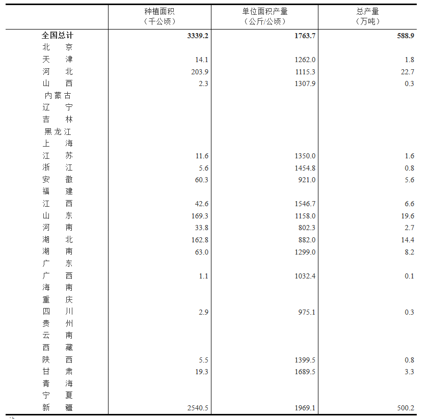 2、北京、內蒙古、遼寧、上海、福建、貴州、云南的棉花產量因不足0.1萬噸,未列出;吉林、黑龍江、廣東、海南、重慶、西藏、青海、寧夏等省(區、市)沒有棉花生產。