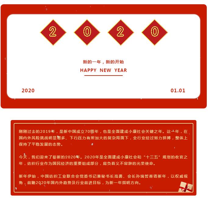 道阻且長,行則將至。2020年是充滿希望和挑戰(zhàn)的一年,新的一年開啟新的希望,新的征程承載新的夢想。希望廣大紡織行業(yè)工作者,不忘產(chǎn)業(yè)報國初心,牢記強國富民使命,不馳于空想,不騖于虛聲,以求真務實的精神、奮發(fā)有為的姿態(tài),直面挑戰(zhàn),開啟行業(yè)發(fā)展新篇章。