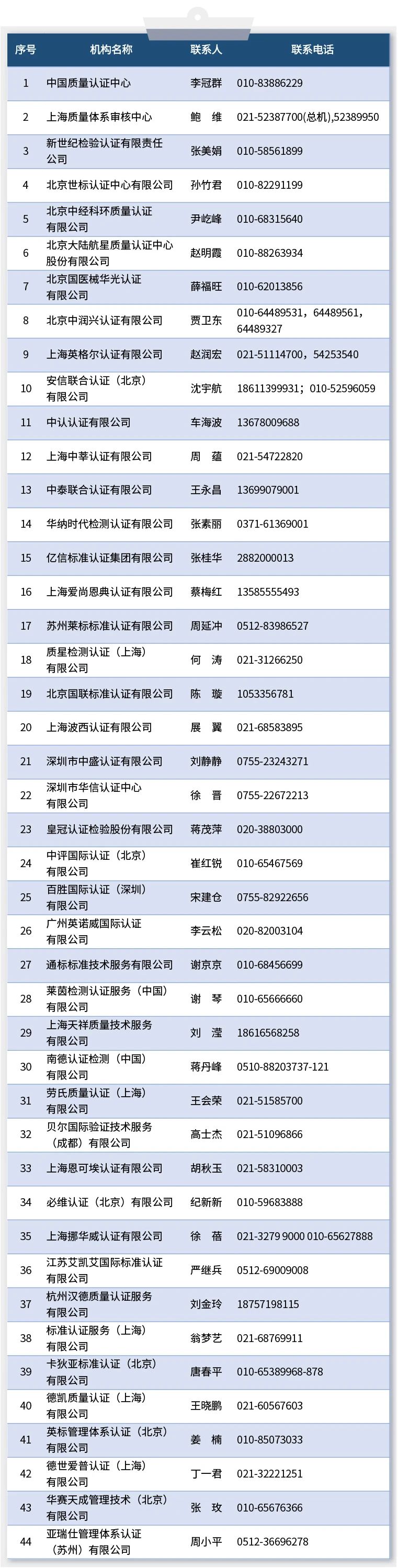 四、中國境內可以開展醫療器械管理體系(ISO13485)認證的機構名錄