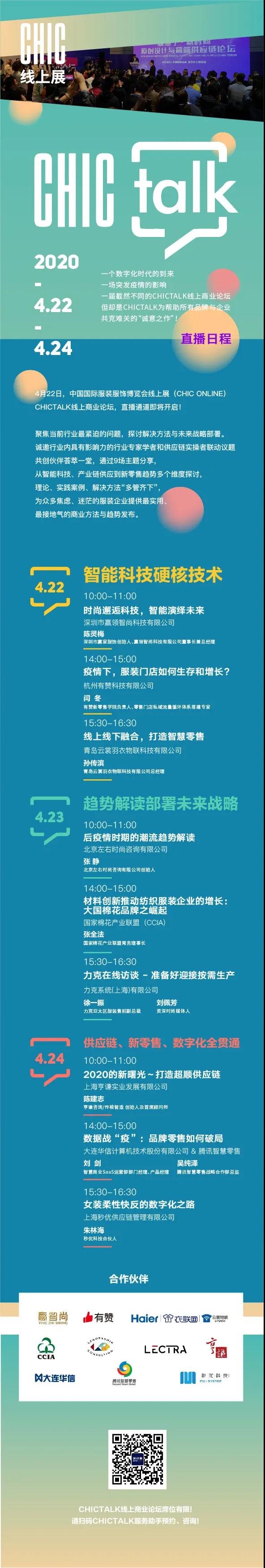 您現在的位置是:首頁 > 要聞 官宣!CHIC TALK線上商業論壇4.22-24最全日程! 來源:CHIC官微 發布日期:2020-04-20 字體: 【小】 【中】 【大】 熱門文章: 聚力專精特新 共筑產業未來—2026中國紡聯春季聯展【紡織專... [2026-02-05] 鏈接全球家紡商機,2026intertextile秋冬展展位... [2026-02-04] 數讀2025 | 盤點全年中國紡織行業對外貿易表現 [2026-02-03] 以改革創新精神將社會工作各項決策部署落實到位--與會代表深入... [2026-01-28] 鏈接全球紡業,共啟“十五五”新篇--2026年紡織貿促會邀您... [2026-01-27] 展會直通車