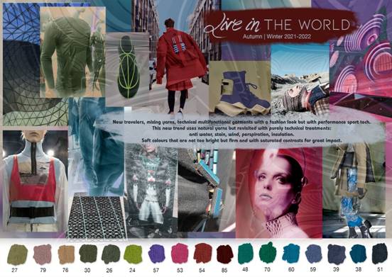受新的旅行者啟發,該主題提倡紗線混搭,兼具運動性能和時尚之感的高科技多功能服裝。使用完全經過功能性處理的天然纖維紗線:防水、抗污、防風、吸濕排汗、保溫。在顏色的選擇上偏愛較低明度且具有一定飽和對比度的色調,這樣的色彩不易使人混淆。