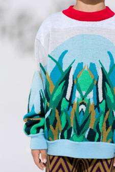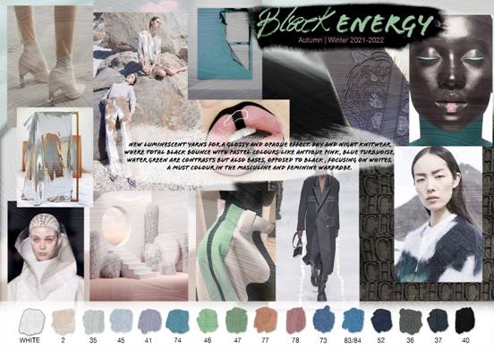 新的有光澤、不透明且反光的閃光紗線是這一主題的重點。這里我們希望這樣的針織衫日夜可穿,顏色以全黑外套為主,輔以蠟筆色調的內搭形成對比,例如復古粉、松石藍綠、水綠色與黑色形成反差;白色,一個男人女人衣柜中必不可缺的顏色,也是該主題的重點色。