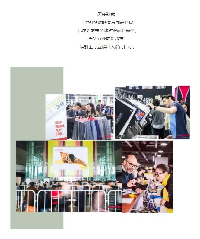 2019intertextile春夏面輔料展吸引了來自23個(gè)國家和地區(qū)的近3300家面輔料企業(yè),以6大展館、9大展區(qū)近162000平方米的規(guī)模恢弘開啟。