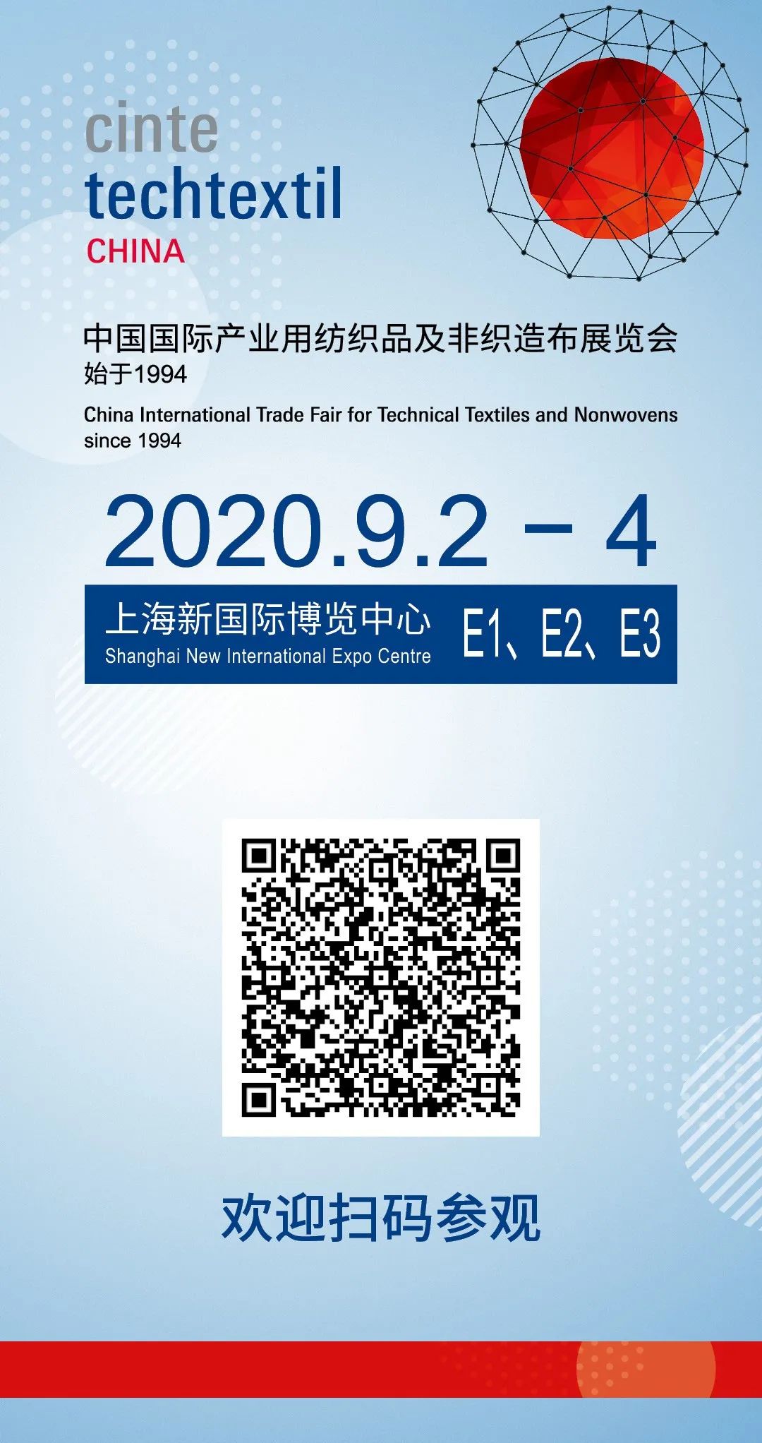 “問渠那得清如許?為有源頭活水來”。隨著纖維新材料在許多未知應用領域的拓展與縱深,產業用紡織在更深遠的意義上,為“民生產業”與“強國產業”的定義,注入新的時代注解。CINTE20作為疫情后全球專業展會第一站,是蓄勢待發的展商們釋放產能的有效平臺,創新產品、潮流趨勢、工藝技術、權威發布將在這里融合碰撞,這場期待已久的盛會將如同撬動能量巨環的扛桿,將纖維新材料的源創新傳遞擴散至產業鏈下游的各環節、各領域,為健康安全的美好生活賦能。