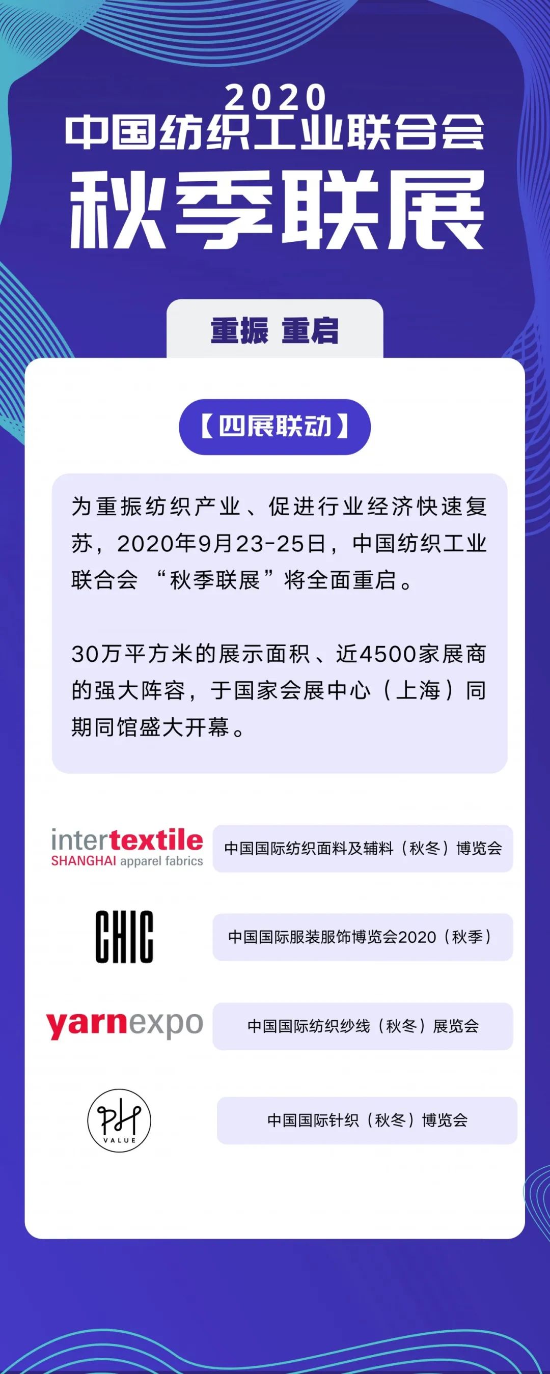 2020yarnexpo秋冬紗線展除了全品類優質纖維紗線展品,現場還有豐富多彩的活動。包括:中國針織花式紗線趨勢、中國纖維流行趨勢主題展示區、綠色纖維標志認證主題展示區、企業新產品發布會/秀、纖維新視界--紡織材料創新論壇以及直播逛展?在線"訪"紗等,充分展現紡織源頭產業的勃勃生機和活力。