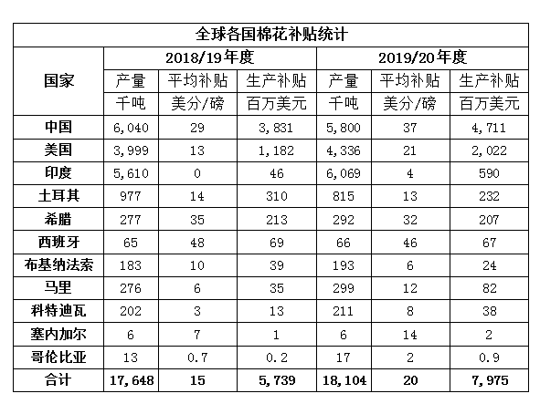 如果土耳其的棉花產(chǎn)量有90%是經(jīng)過認(rèn)證的棉籽生產(chǎn)的,而且所有棉農(nóng)都申請了保險費,ICAC預(yù)計土耳其為棉農(nóng)提供的補(bǔ)貼總額從2018/19年度的3.1億美元(14美分/磅)下降到2019/20年度的2.32億美元(13美分/磅),原因是土耳其里拉貶值和棉花產(chǎn)量下降。