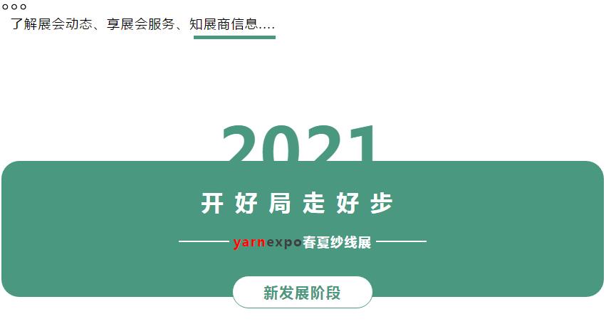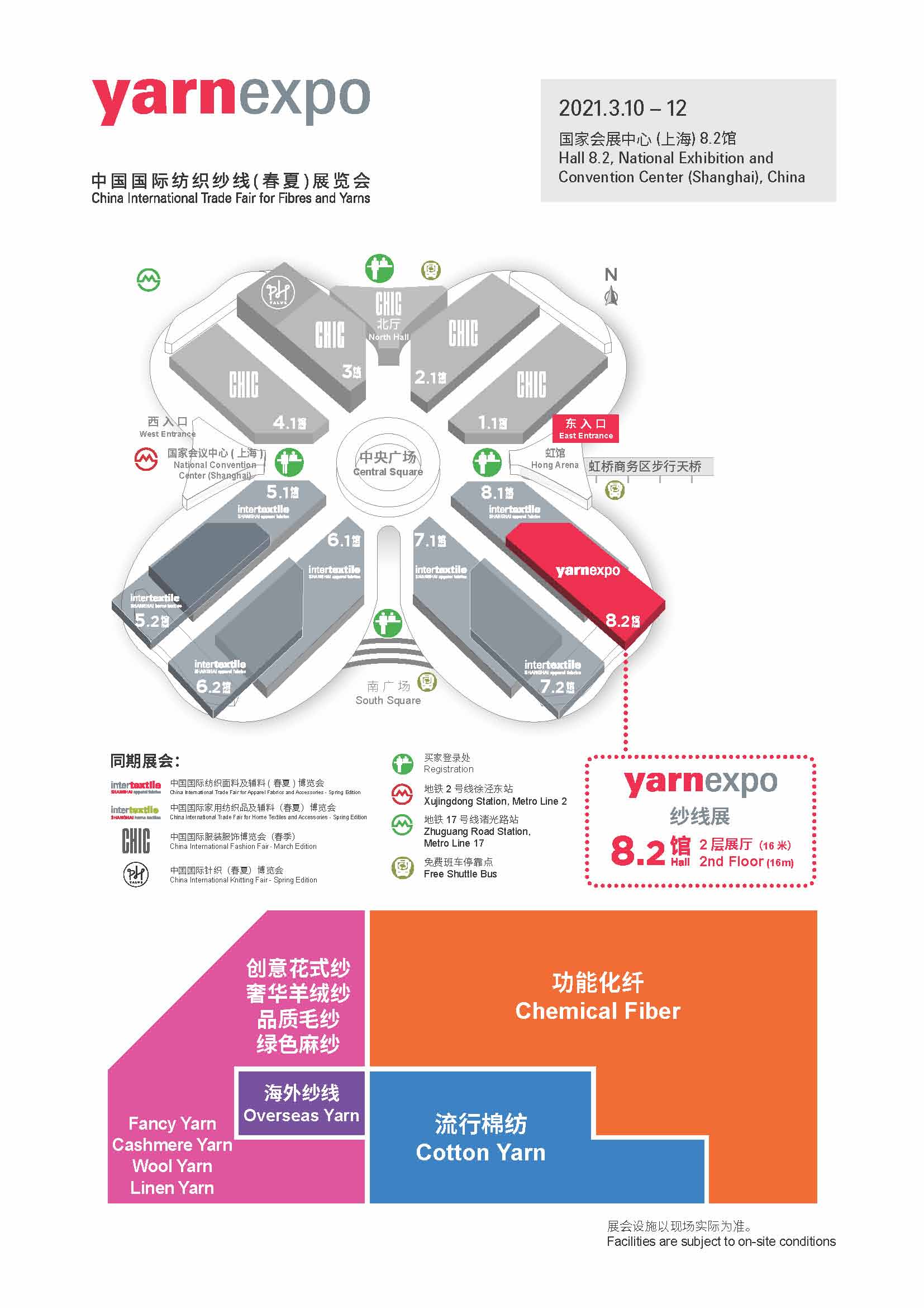 3月10-12日,2021yarnexpo春夏紗線展將在國家會展中心(上海)8.2館舉行,與intertextile面料展、intertextile家紡展、CHIC服裝展、PHValue針織展五展聯動,同期同館舉辦。從纖維紗線、面料,到服裝、家紡,為產業上下游企業提供一個暢通產業鏈、贏得新商機的"一站式"對接交流平臺。