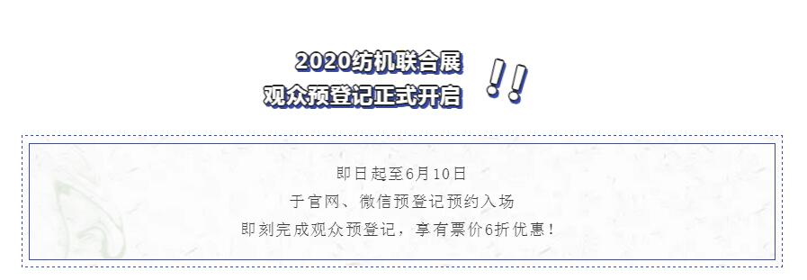 2021年3月1日,紡機聯合展觀眾預登記系統、展商客戶邀請系統、媒體在線注冊系統已同步上線。6月10日前,觀眾可登錄展會官網、“國際紡織機械展服務號”官微、中國紡織機械協會官微、中國貿促會紡織行業分會官微進行預登記。