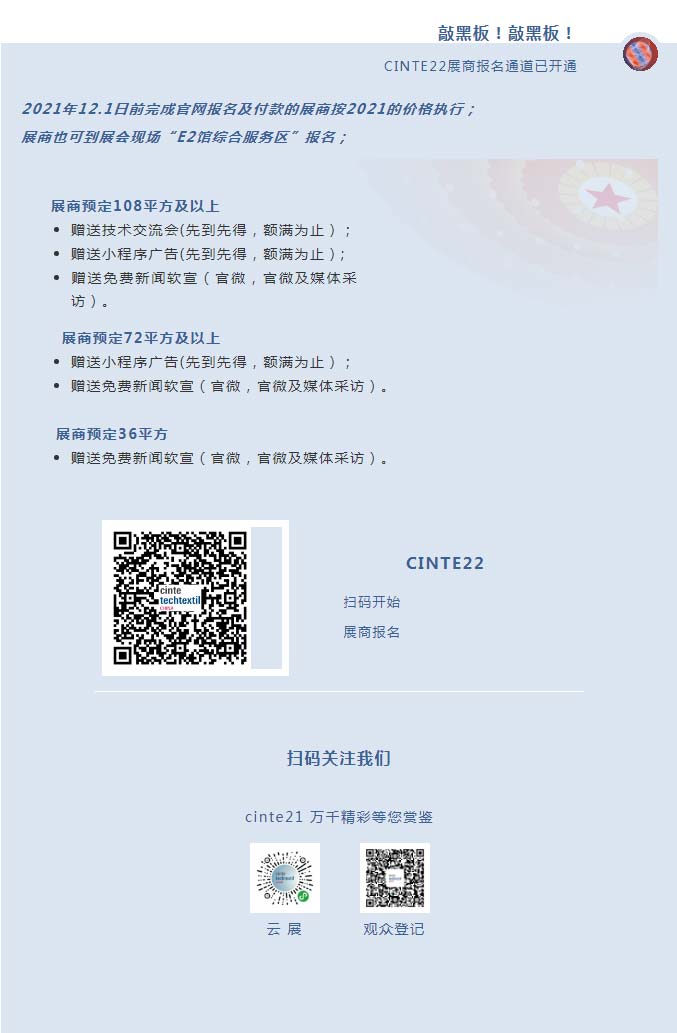 6月22日-24日,上海新國際博覽中心您將在CINTE21現(xiàn)場展位亮相。