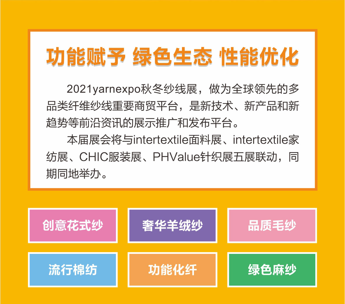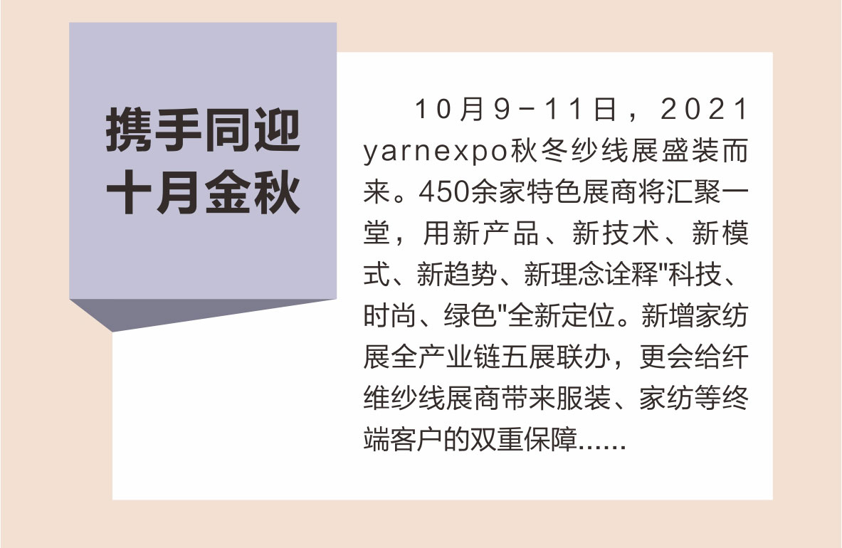 您現在的位置是:首頁 > 要聞 攜手赴金秋!2021yarnexpo秋冬紗線展十月盛裝而來! 來源:yarnexpo紗線展 發布日期:2021-08-10 字體: 【小】 【中】 【大】 延期是為了更好地再出發! 熱門文章: 聚力專精特新 共筑產業未來—2026中國紡聯春季聯展【紡織專... [2026-02-05] 鏈接全球家紡商機,2026intertextile秋冬展展位... [2026-02-04] 數讀2025 | 盤點全年中國紡織行業對外貿易表現 [2026-02-03] 以改革創新精神將社會工作各項決策部署落實到位--與會代表深入... [2026-01-28] 鏈接全球紡業,共啟“十五五”新篇--2026年紡織貿促會邀您... [2026-01-27] 展會直通車