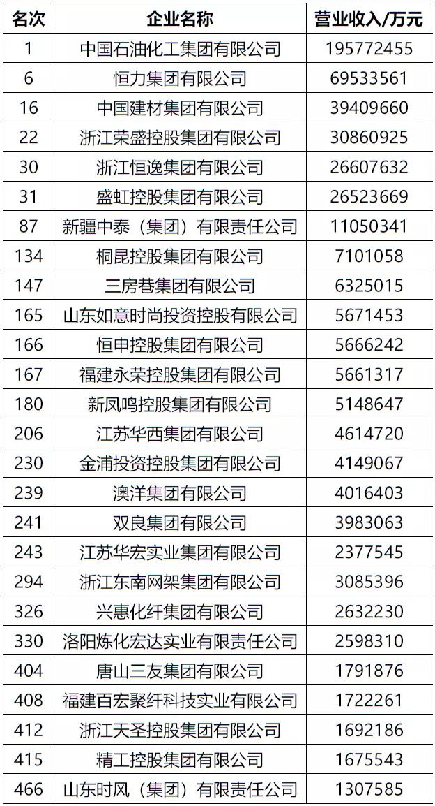 您現在的位置是:首頁 > 要聞 多家化纖相關企業入選2021中國制造業企業500強名單 來源:中國化學纖維工業協會 發布日期:2021-09-26 字體: 【小】 【中】 【大】 9月25日,在2021中國500強企業高峰論壇上,中國企業聯合會、中國企業家協會連續第17次向社會發布“中國制造業企業500強”名單。其中,26家化纖相關企業躋身榜單。 熱門文章: 聚力專精特新 共筑產業未來—2026中國紡聯春季聯展【紡織專... [2026-02-05] 鏈接全球家紡商機,2026intertextile秋冬展展位... [2026-02-04] 數讀2025 | 盤點全年中國紡織行業對外貿易表現 [2026-02-03] 以改革創新精神將社會工作各項決策部署落實到位--與會代表深入... [2026-01-28] 鏈接全球紡業,共啟“十五五”新篇--2026年紡織貿促會邀您... [2026-01-27] 展會直通車