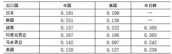 表1 2019年東亞主要國家對中國、美國和中日韓的出口占本國出口的比重