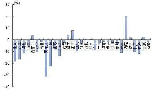 中國產(chǎn)業(yè)結(jié)構(gòu)升級在過去20年取得了長足的進步。從圖2可以看到,絕大多數(shù)省份第二產(chǎn)業(yè)占比均出現(xiàn)明顯的下降,隨著經(jīng)濟發(fā)展第三產(chǎn)業(yè)的比重在各省都將上升,各省普遍實現(xiàn)了產(chǎn)業(yè)結(jié)構(gòu)升級。2020年在同一區(qū)域內(nèi)各省的產(chǎn)業(yè)結(jié)構(gòu)相似程度較高。從圖3可以看到,華北地區(qū)中,除北京外,天津、河北、山西、內(nèi)蒙古第二產(chǎn)業(yè)占比較為接近;華東地區(qū)中,除上海外,江蘇、浙江、安徽、福建、江西、山東的第二產(chǎn)業(yè)比重接近;中部地區(qū)中,河南、湖北、湖南的第二產(chǎn)業(yè)占比基本相當。