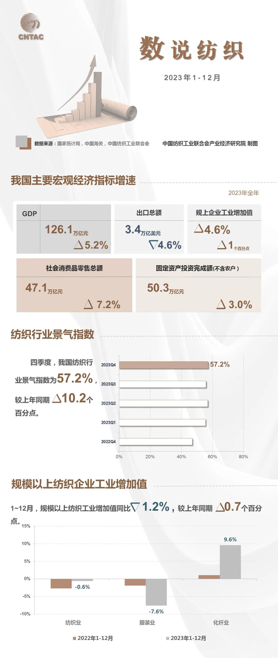 您現在的位置是:首頁 > 要聞 “數”說紡織:2023年1~12月 來源:中國紡織工業聯合會產業經濟研究院 發布日期:2024-02-20 字體: 【小】 【中】 【大】 熱門文章: 聚力專精特新 共筑產業未來—2026中國紡聯春季聯展【紡織專... [2026-02-05] 鏈接全球家紡商機,2026intertextile秋冬展展位... [2026-02-04] 數讀2025 | 盤點全年中國紡織行業對外貿易表現 [2026-02-03] 以改革創新精神將社會工作各項決策部署落實到位--與會代表深入... [2026-01-28] 鏈接全球紡業,共啟“十五五”新篇--2026年紡織貿促會邀您... [2026-01-27] 展會直通車